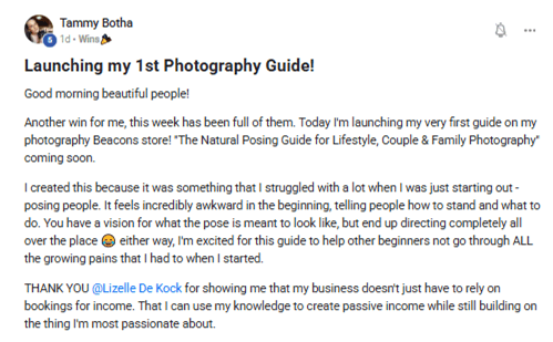 "THANK YOU...for showing me that my business doesn't just have to rely on bookings for income. That I can use my knowledge to create passive income while still building on the thing I'm most passionate about"